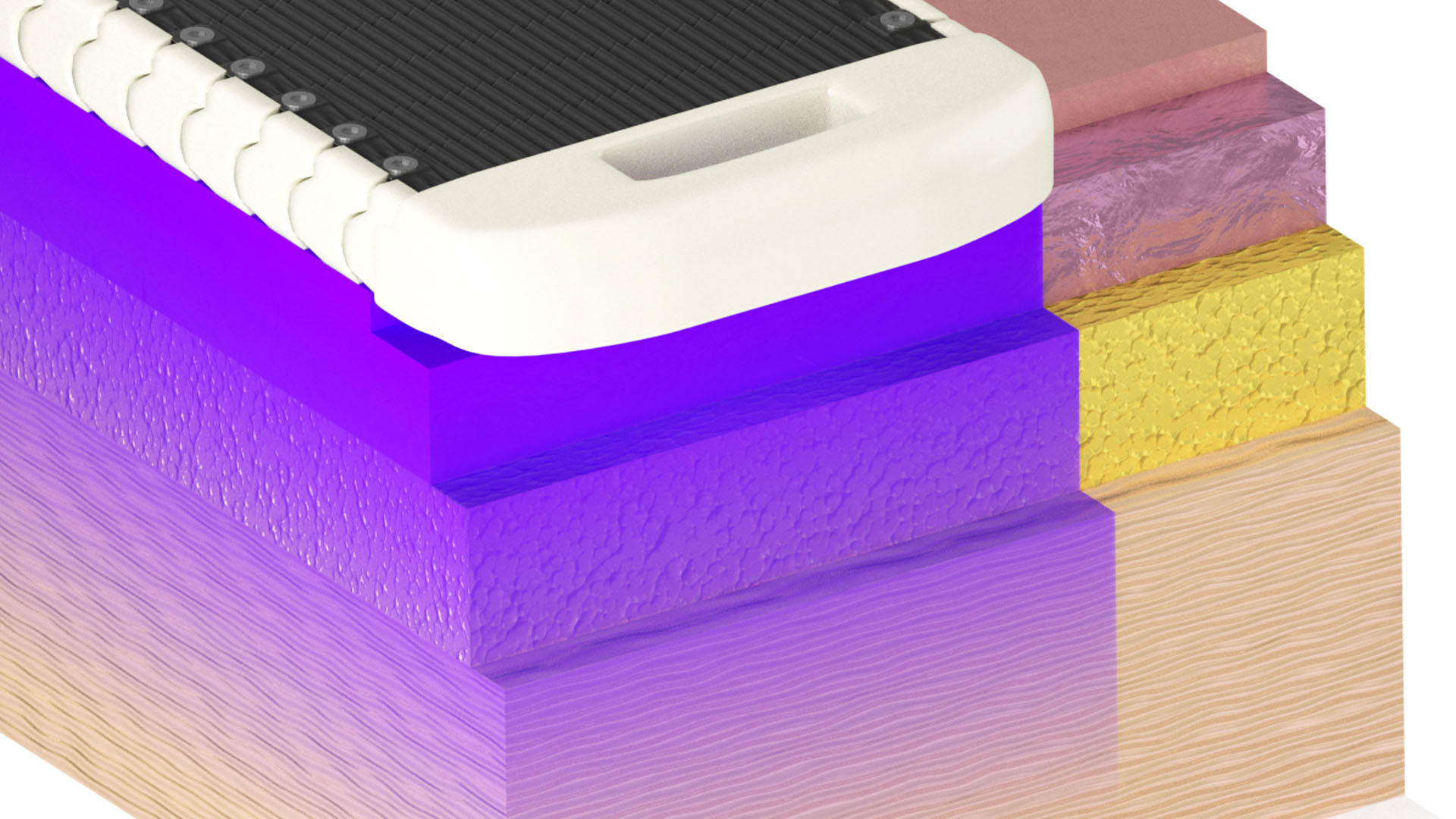Animation demonstrating the use of Laser Therapy on tissue. This cutaway shows how deep SLD and Laser Diodes penetrate.